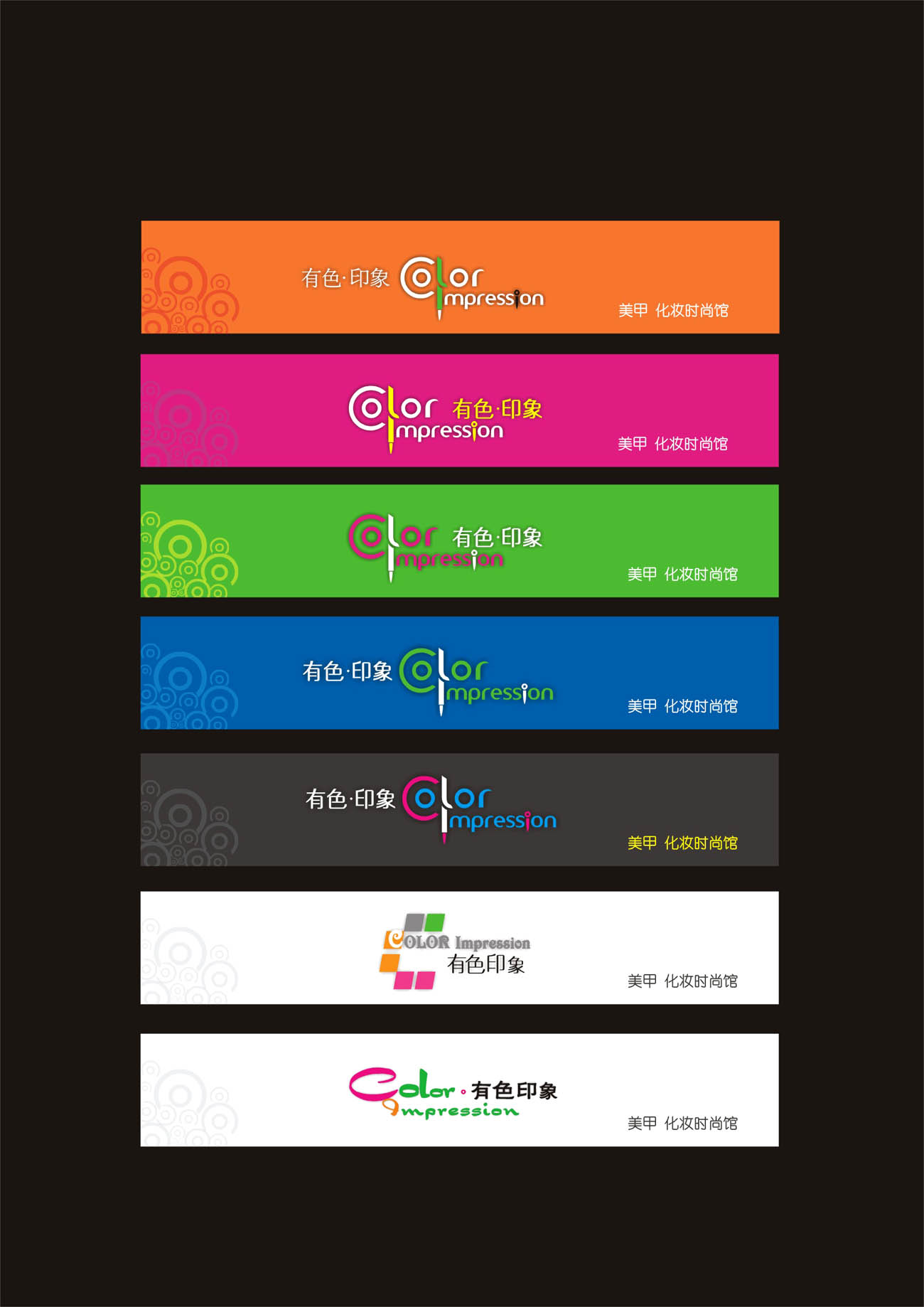 最后几张不错,“有色印象”的平面效果好,可起初以为是楼盘LOGO,如果是美甲的话就需要华贵的女人味了。