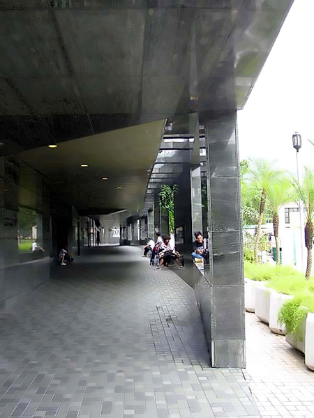 RE:Shopingmall工程及业态规划实务(案例图文介绍) 又一城:骑楼装饰,全墨绿色,连吊顶天花均为花岗岩,对施工要求较高,这里是客人很好的一个休息区,很有整体感!