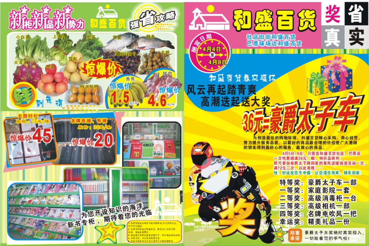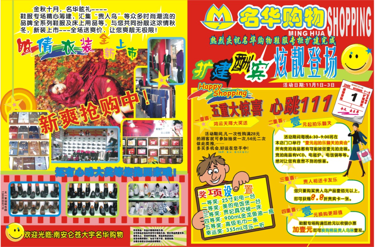 谢谢,我们拍照的技术是不好,多指点二招。谢谢益名,我们的客户就只知道省钱,不管活动内容,商品多与少,下次碰到好说话的客户就按您说的来做,也好改改风格。