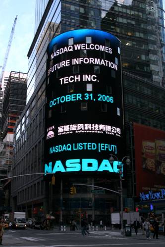 美国东部时间10月31日10:30,(北京时间10月31日23时30分),富基旋风科技有限公司(NASDAQ:EFUT)成功登陆美国纳斯达克证券交易所,首日收市7美元,涨幅16.67%。本次发行1,133,500股,发行价6美元,共募集资本680万美元。