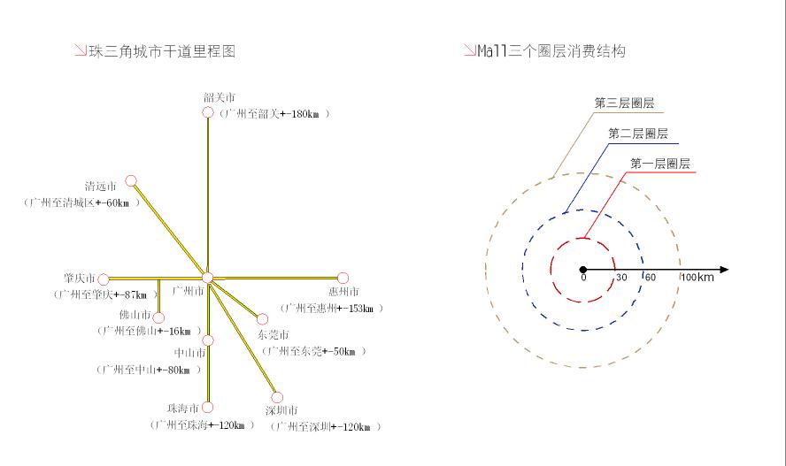 2) 中国购物中心的发展是在人均GDP不高、人均汽车占有量不高的社会现实下发展起来的,这就注定了中国购物中心的发展必定是在城市中心首先取得成功。在目前来看,成功的购物中心都是位于城市中心,但进入21世纪以后,一些以北美购物中心为蓝本的郊区型购物中心开始吸引了人们的注意,如广东省东莞市华南MALL,这一类购物中心代表中国购物中心的发展即将进入一个新的阶段;