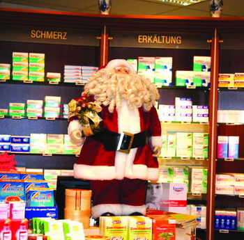 在圣诞节之前,人们通常从12月初就开始忙碌起来。药店纷纷用各式玩偶、挂件装饰店面,准备装礼物的圣诞袜子、美丽的圣诞树,一切都预示着一个快乐的假日购物季节的到来!在整个圣诞购物季节中,零售药店的销售额通常会比前一年增加5%左右。当然,美国的药店并不止出售药品,还销售各种日用品。他们提供便捷快速的服务,以此吸引消费者。