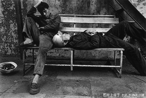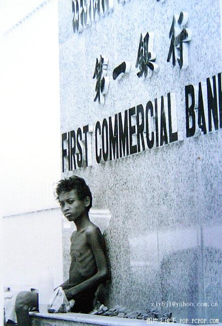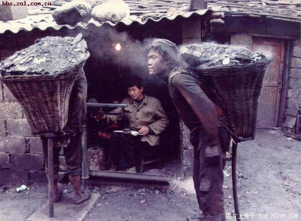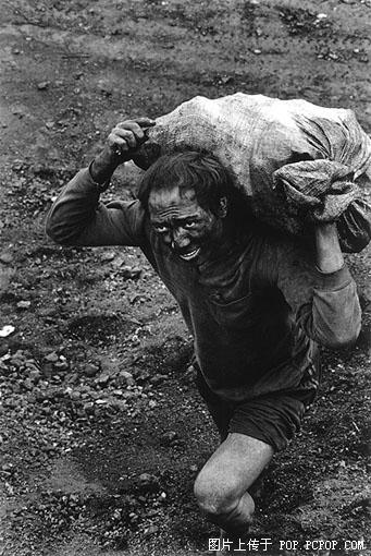 4王致中,17岁, 在贵州以背煤为生。一筐煤40公斤,从煤坑向上爬100米,然後再走1000米山路,挣1元人民币