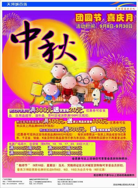 主题:天河城百货中秋期间促销活动