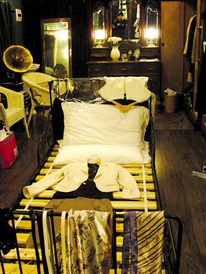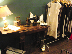 从报话机到地板的色彩,都是怀旧的,空气中弥漫着历史的浪漫。还利用一些仿古的家私、模拟户外的景致来表现这种令人感到轻松和温馨的氛围。除了泥土色系,还有做酒的金色、芥末的绿色、原木的咖啡色等,惬意舒适的前提下,把长长短短、或紧或松的各种流行元素性感混搭,立刻提升了时髦品位。利用服装、模特、手绘图案、家私摆设来勾勒出一个洋溢浓浓女人味的画面,其中以复古中世纪欧洲的古董色最有本季潮流精神,随时准备优雅出发。