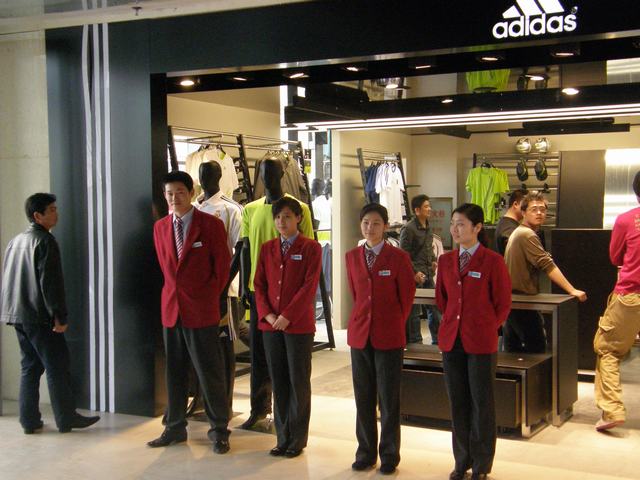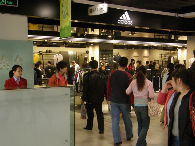 阿迪 鞋架空的.耐克没开.楼主你也发点新的片片啊!现在三楼四楼业绩好吗?