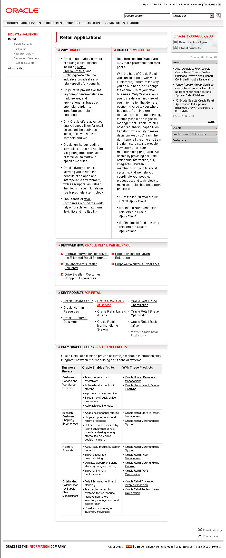 经过一系列的战略性收购包括 Retek, 360Commerce, and ProfitLogic等著名零售