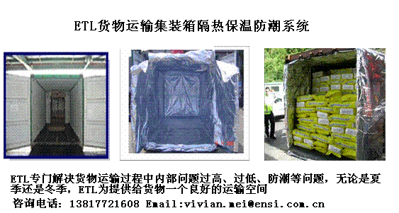 ETL集装箱隔热保温防潮系统解决货物运输过程中集装箱内部温度过高、过低、防潮等问题。