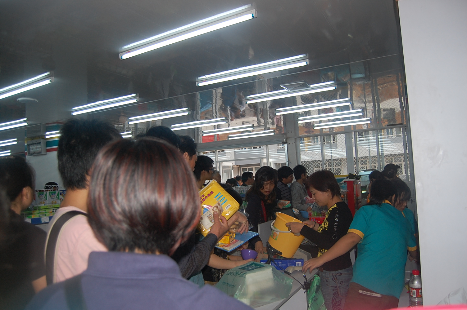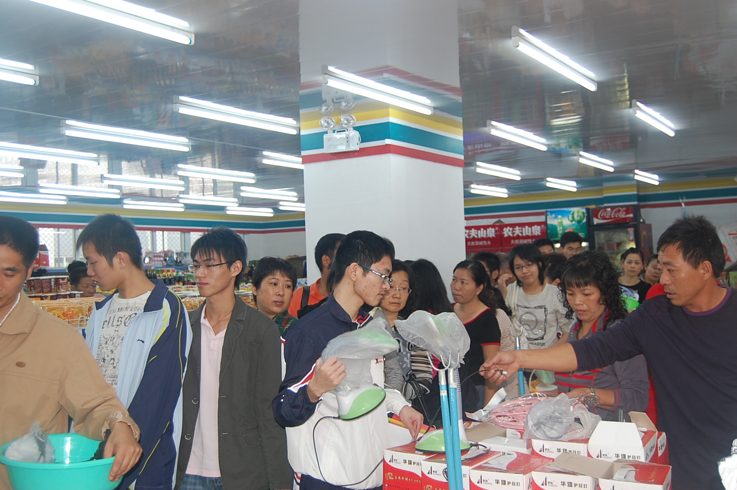 温州茶山大学城内,近日当家人开了一家新店,面积有近两百个平方,开业近几天,店内学生消费者是络绎不绝,人满为患.几乎爆棚呀,真可谓:"新店开张百平方,人满为患选购忙,吃喝拉撒日用品,收银收到手发晃"啊,哈哈!
