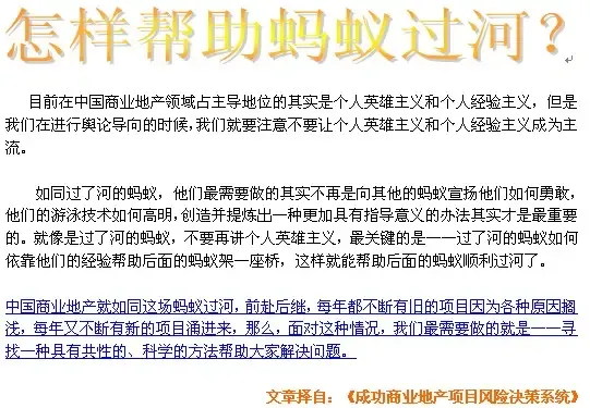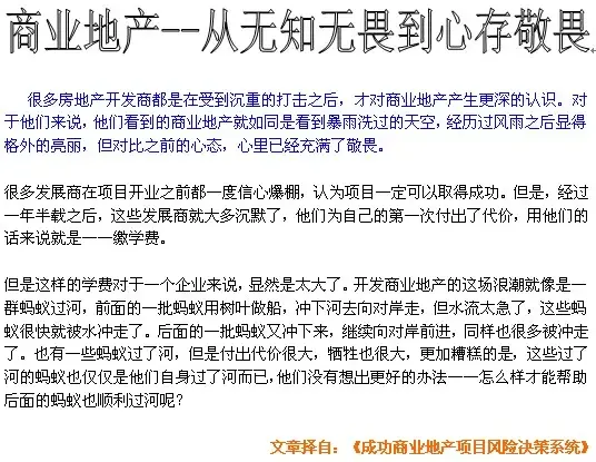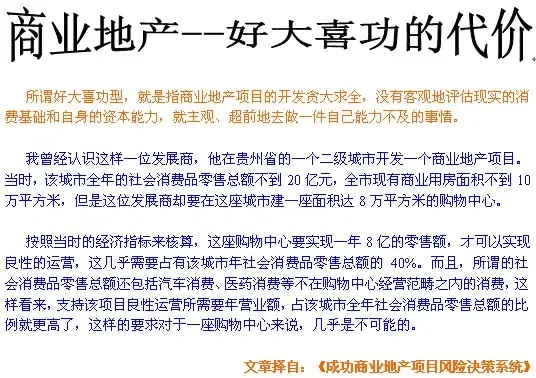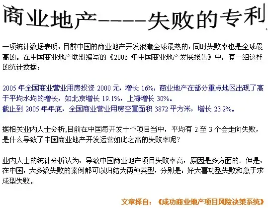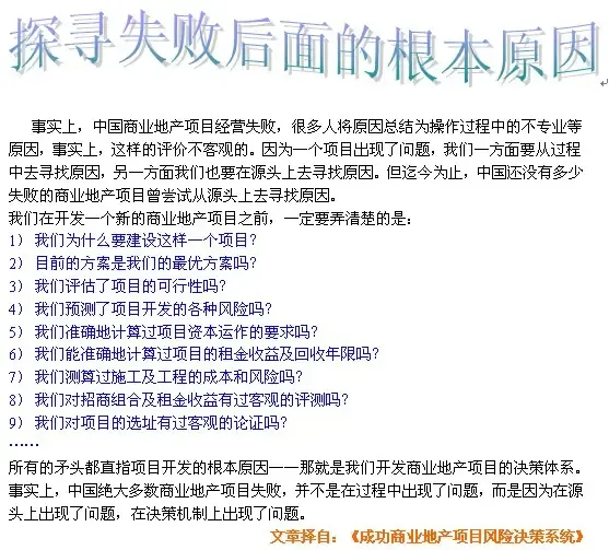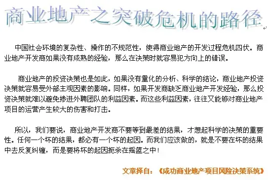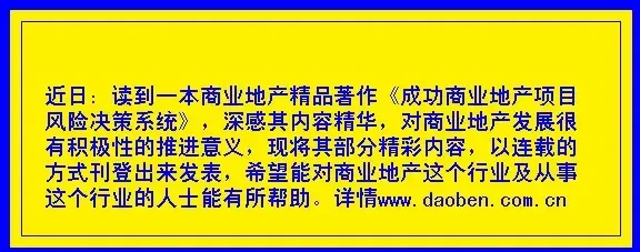 “那么,你的意思是说是的,商业地产项目首先要回避政府法规的风险,然后才开始后面的工作啰。”发展商说。
