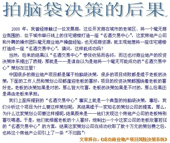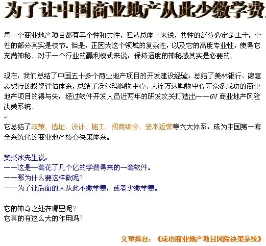 记得2004年的时候,我们在为一个位于广州的商业地产项目进行发展战略研究的时候,这时发展商根据我们给他的思路,问了一个问题:“我们在做一个商业地产项目的时候,首先应该从哪些方面开始论证呢?”
