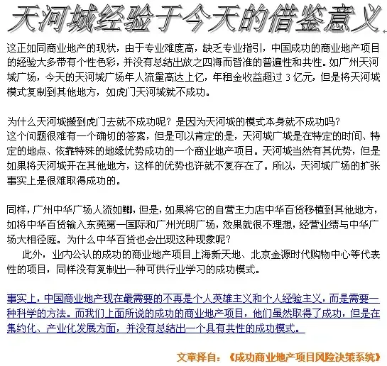 如果仔细地研究广州的城市商业网点规划,我们可以看到本项目区域商业规划与天河城广场的区域商业规划的不同。