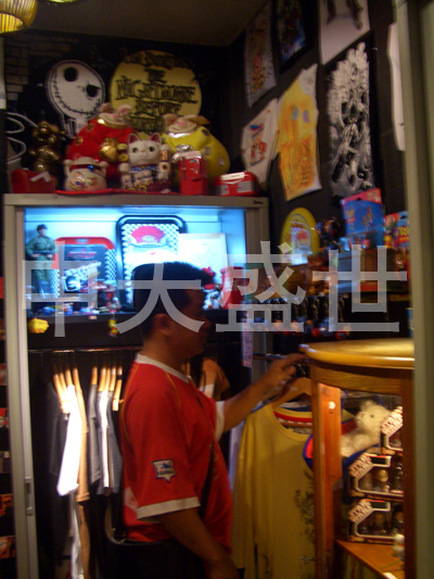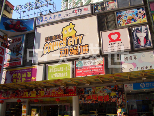 深圳东门是最具有本土流行文化色彩的商业区,因此,走出动漫城之外,与动漫主题相关的店铺也依然零星分布。东门受香港流行文化影响最深,加之这里本来就是深圳最有历史沉淀的老商业区,西华宫这个深圳“潮人”的圣地依然颇有人气,这里能与动漫文化有最直接联系的就是一楼密布的电玩游戏柜台了,最新款的PSP、NDS等游戏机与香港是同步的,由于某些原因无法用现场图片展示。