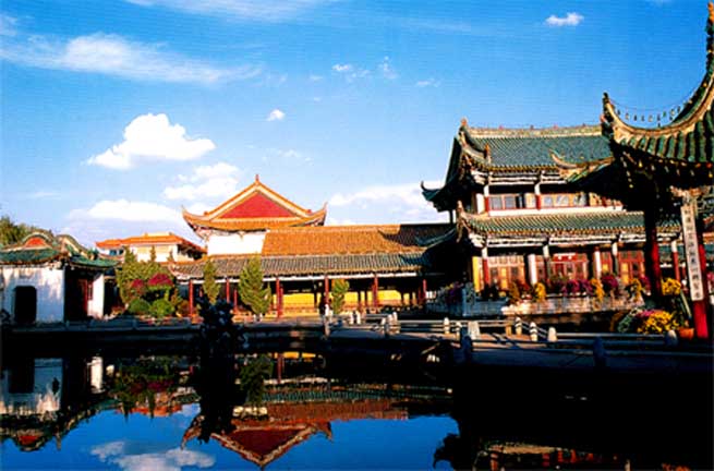 云南师范大学东北侧,绿树环合之中,有一座“一二·一” 烈士墓,其中安息着为民主献身的四烈士。墓西,耸立着一块由著名学者冯友兰撰文、闻一多篆额、罗庸书丹的中国一代名校——西南联合大学纪念碑。碑座呈圆拱状,高达l丈5尺,宽8尺,中嵌石碑,碑镌千字之文,记述着西南联大的创建历史和校风校典,是中国革命史、教育史上的一块丰碑。多少年来,千百位昔日是联大学生、今日为海内外著名专家学者的人士络绎不绝前来参拜此碑,追抚往日联大的校园生活,缅怀先师们对自己的教诲。