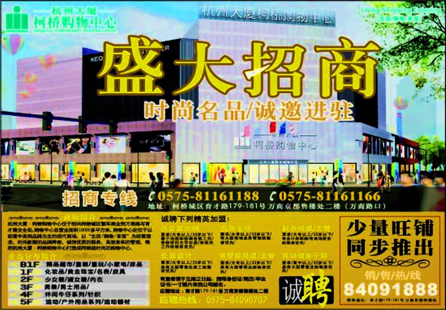 打探杭州大厦·柯桥购物中心招商条件 |