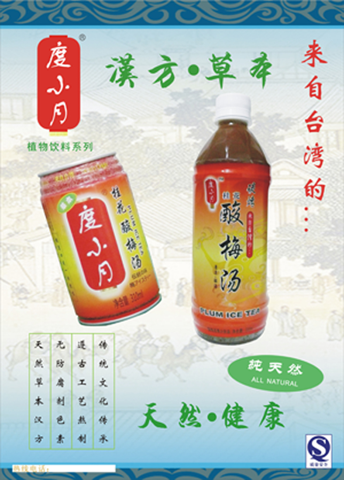 度小月”酸梅汤是“壹客食品”以绿色健康为本的原则下“自研自产自销”的产品,“度小月”酸梅汤系用台湾工艺,祖传配方,精选上等乌梅、山楂、甘草等配方、遵循古人精炼之法,细火慢熬而成,冰镇后风味更佳,是个消暑的绿色天然健康饮品,身体无负担,绝无化学添加剂.公司业务部电话:021-64014871 薛丹 13641869333