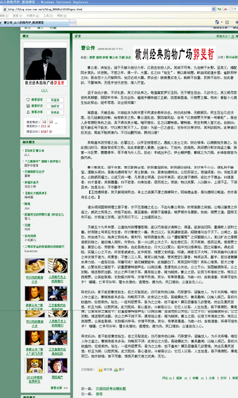 天朝五十九年仲夏,公逢饶州府懵懂客商,遂以巧言淫计诱弊之,得逞。遂游说旧同,重操欺人资财之事。时有隐士号笑忘书生者,作讨曹檄文一篇,责之以义,驳其谰言诳语,昭隐情勾当于天下。公闻之,盛怒。然自绝于众,烧身之势成矣。惧利亏,转而假意自责。以“遭赃罹冤”之词蒙蔽众人。复以旷古之厚颜诸般狡辩之,曾欲掩人视听。作势曰:吾一介山民土夫之子,裕生每忆及,无不疾首,感而泣焉。悟商贾之道,莫苦心志,劳筋骨,饿体肤。自此吾绝贪念,行大义以聚众,韬华光以悟真知。因之成事矣。得此污蔑,实属奸佞诟害也。此中疾苦,惟愿父老明鉴,叩谢。闻者无不大哗。不料其暗中以卑劣之举发难于诸方。所累者,不啻二三人耳。竟有认贼为雄,赞其宽宏仁厚者,特笑谈耳。鄙乎,若非诸臂膊杀身力挺,一虚妄狂徒,何事可成?倘无蝇营龊举,此粗鄙白丁,焉有歪财可图?其私心难易,若犬之嗜便。公聚伥狈之属若干,欲重塑赛特思声名,以挽狂澜,是谓危机公关也。公之于众,妄图暗渡陈苍。公之狡黠,难逃黎民法眼,伐公之声不绝于耳,偶有挺公者,疑为贼姘。曹公之恶,似有万年难却之势,殃及江西商贾。公亲赴联商,衣附振兴呼号,亦难平民愤。哀兮,有草莽愚甚,为助一纣,自毁清誉,所得可偿失乎? 噫嘻,亡羊可补牢,覆水永难收,倡理性,德为先,民口难防,公道自在人心。