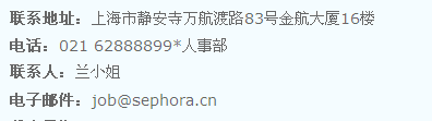 主题:请问SEPHORA丝芙兰中国公司人事部的联系电话