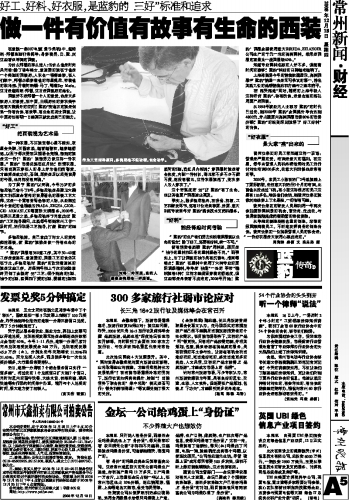 上海某商场今年的销售数据显示,高档西服中“蓝豹”销量一直是无可争议的第一,排名其后九位的品牌销售总和方能与之基本持平。