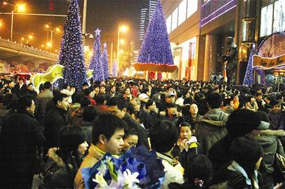 “和去年圣诞相比,我们的活动力度是增加了,但没想到,顾客的消费热情并没有受金融危机多少影响,相反还出现了井喷势头,这可能是和顾客这些时捂紧荷包有关系吧。”中商百货相关负责人接受记者采访时一脸兴奋:你看,我们的收银台前都排了这长的队了。今晚的化妆品比八折还低,可以说是史无前例,估计到了午夜,人流还会比现在火爆。