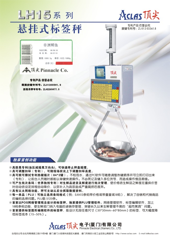 主题:厦门顶尖LH15悬挂式条码标签秤