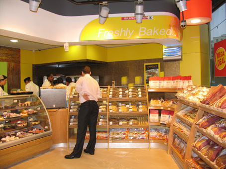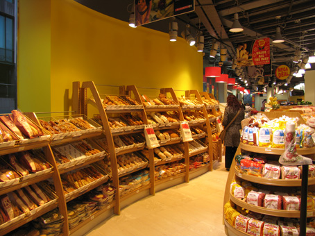 首先感谢楼主分享图片.祝您2009发财长久!!!但是在图中我们也可以有些许瑕疵出来.1.在国外烘焙课是作为主食的主力区域来规划的,但是从图中看出,这个区域的维护情况做的实在是差强人意的.单品数较少且分类不明确.如果大家想知道具体怎么分类陈列,可以去大润发实际市调下即可知道.基本的甜,咸的分类,丹麦,法式等等分类的不清晰,就不能做出好吃的面包给到顾客,而图中基本是属于拉排面所做的一些陈列.工业面包的主题陈列的不清晰也会造成目标顾客的流失,这直接可以影响到店铺的销售的!零售就是细节,细节就是零售的魔鬼!在国外人工这么高的情况下,做成这样也就马虎过关了.再次感谢楼主的分享!!!
