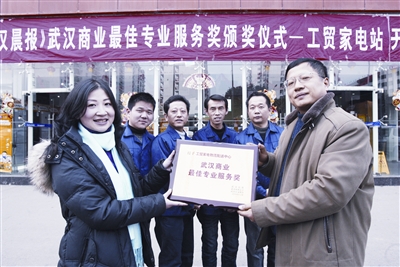 在工贸家电唐家墩店门口,荣获“最佳特色服务奖”工贸家电物流配送中心的四名代表,依然身着朴素的工作服,依然挂着朴实的笑容。工贸家电副总经理唐辉说:“物流配送不像营业员那样总在前台提供服务,但他们的优质服务却是家电从卖场到顾客家中不可或缺的重要一环,他们的幕后工作能得到社会的认可,对他们的辛勤付出将是一种莫大的鼓励。”