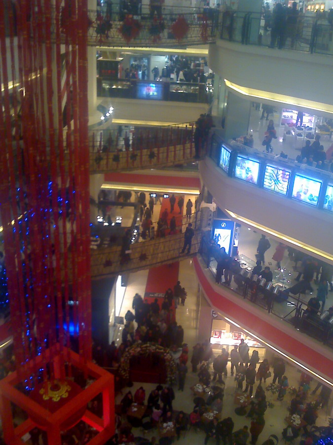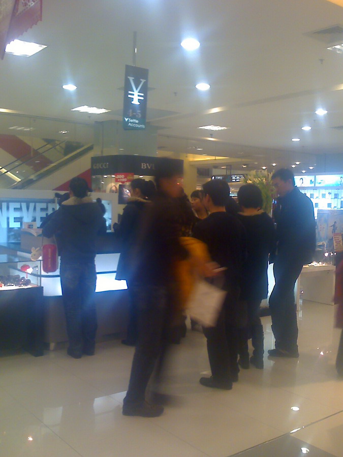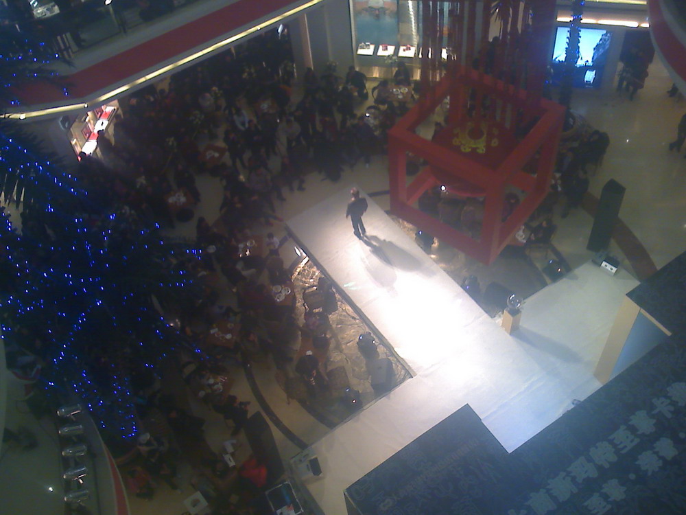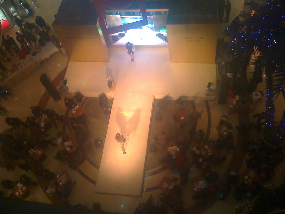 店内文艺节目挺多的,又一次请了外籍模特走秀。都说全球次贷危机冲击大家的钱包,不过看来中原顾客群还是很有购买力的。