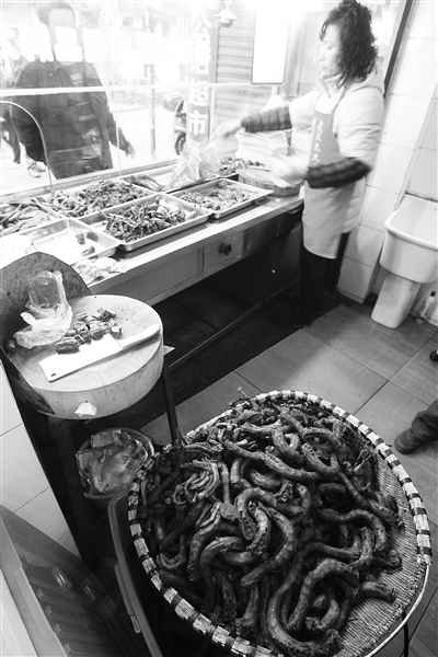 精武路上的20余家经营户,生产工艺流程大致相同,都要经过解冻——脱水(沥干水分)——腌制(用盐和味精、卤水等调味料在真空腌制机内腌制10余分钟)——下锅卤制——起锅摊凉等流程。