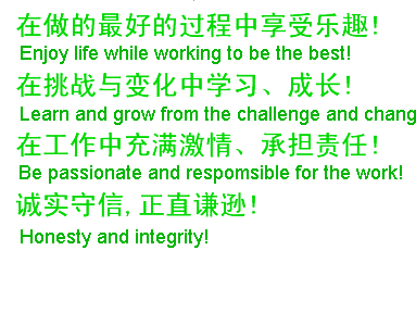 我们的员工与企业共同成长、获得尊重与培养,获得专业上、工作上、生活上的提升;我们为每一个员工提供开放、公平、充分的成长空间,提供安全、健康的工作环境;我们的每一个员工都是公司大家庭的一员。