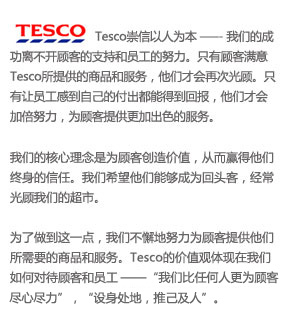 服务:服务好员工是服务好顾客的保证,服务好顾客是服务好股东的保证;始终满足顾客需求,超越顾客期望;