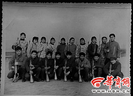 1979年在民生商店高民兵集训,左一为严建设