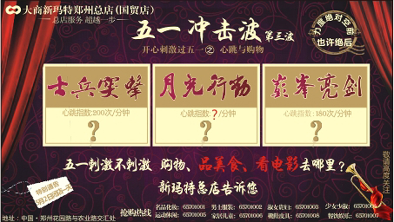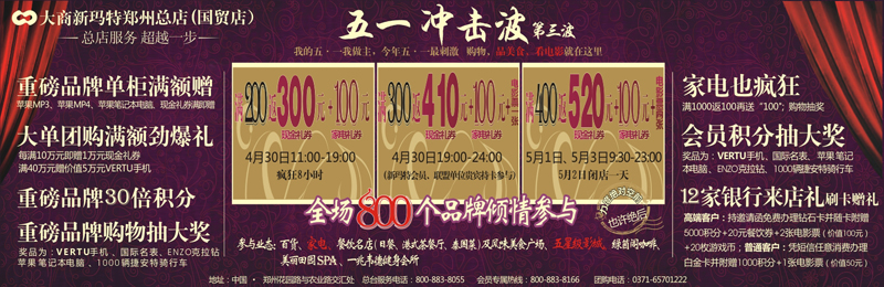 附件:4.17河南日报.jpg (113K) 下载次数:5 附件:4.17横条.jpg (53K) 下载次数:2 附件:大河报定稿----4.19.jpg (120K) 下载次数:3 附件:横四分之一广告.jpg (92K) 下载次数:2 附件:四分之一报纸广告.jpg (107K) 下载次数:2 附件:周五、日广告(彩).jpg (112K) 下载次数:7