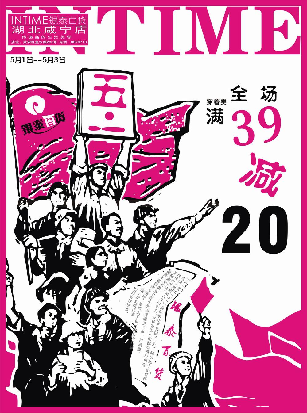 怎么说呢.....更像家电 不像百货 用老海报尤其是版刻做广告已经过时了,色彩也有点单调,满39减20 那几个字排的不好,不过主画面整体还是很有冲击力