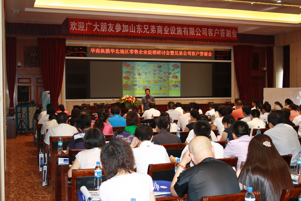 7月25日至7月27日,2009年山东兄弟设施有限公司客户答谢会在山东泰安丽景广场酒店隆重举行。山东银座、山西美特好、烟台振华、河北保龙仓等90余家国内知名零售企业近200人参加了此次会议。山东兄弟商业设施有限公司的营销总监丁启超在此次会议上致开幕词。