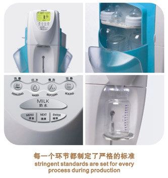 3. 此机像小台灯大小放置在桌上,用一段时间后可拆可洗可方便消毒,循环使用。另外,全自动冲奶机无论大人小孩量取奶粉和冲奶都非常方便,对于那些手颤动者、独臂人和盲人则是更好的帮助.