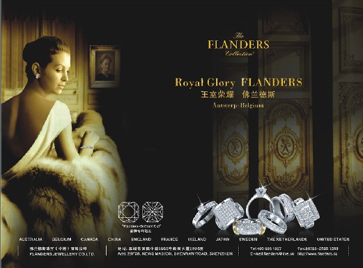 皇室荣耀 FLANDERS 来自比利时的顶级珠宝品牌Flanders, 早在2007年就将目光投向了中国市场。经历了2008年的全球市场的震荡之后,Flanders更加坚定了2009年的中国步伐。