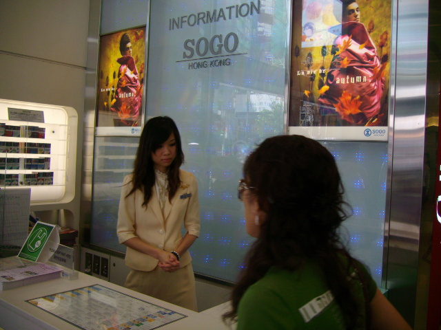 因为小可是第一次到香港咯,更别说一到太古就能找到客服中心啦。不过好歹是做零售的,也不至于丢了俺们大陆同行的脸不是,所以我乖乖的去问了商铺的导购员啦。在去问路的途中,没有仔细看VI指示牌,结果那导购员小姐很热情的告诉了我客服中心的位置,结果兄弟我去一看之后大吃一惊,为何?因为我看到的客服中心非常非常之局促,大约1.2——
