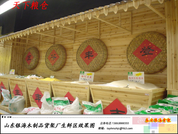 山东银海生鲜区木制品货架厂,做为国内专业的生鲜区木制品货架供应商,在制作工艺,喷漆,组装,层层严格按照国内顶尖管理模式,公司主要经营产品(1)木制现烤卖面包、糕点类展示架,