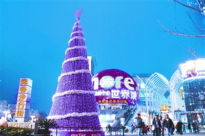 圣诞将至,各商家精心装扮自己。昨晚,武昌光谷步行街,一棵20米高的桃色圣诞树加上璀璨的霓虹灯,营造出梦幻般的街景。