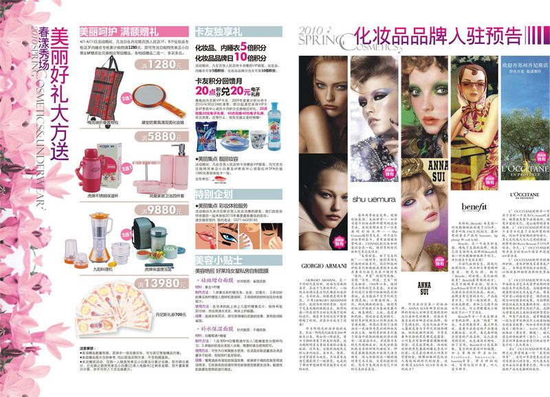 RE:GIORGIO ARMANI等五大化妆品进驻丹尼斯人民店 丹尼斯人民店化妆品: clé de peau BEAUTE,GIORGIO ARMANI, ESTEE LAUDER,GUERLAIN,CHANEL,Sisley,SK-II,BIOTHERM,CLARINS,LANCOME,Christian Dior, Elizabeth Arden ,MAKE UP FOR EVER ,Shu Uemura, FANCL,SHISEIDO, CLINIQUE,~H2O+,SUPREME AUPRES,L'OCCITANE, BEAUTE de KOSE, Anna Sui, Benefit, MENARD,BORGHESE,AUPRES,LANEIGE,L’OREAL,OLAY,YUE SAI , red earth , REVLON , U2B , Mamonde , Neutrogena , MAYBELLINE , DeBON , Senskiner , AQUA SPRINA , DIVUM , 佰草集,CAMENAE,POSHLAM 该帖于 2010-3-31 12:52:00 被修改过 |