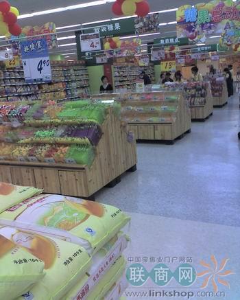 进入超市,感觉到有些像进入了以前徐家汇港汇广场下的联华生活馆,超市的货架精细、装修氛围和环境的渲染非常到位,有些超越了联华生活馆,整个超市的装修类似于商场的装修,精致不奢华。难能可贵的是这家万平米的超市顶部全部吊顶的,格栅灯照明,在生鲜加工、散货区有部分内置的灯带,靠墙的货架全部是内置在墙体的,在超市装修外墙是固定的,很整齐美观,节省了大量资金,这种设计是韩式超市才有的,我们工厂生产的,现在华润万家超市也在使用这种设计,而且连墙面都是钢制面板,听说华润万家超市设计也是韩国的一家设计公司做的。