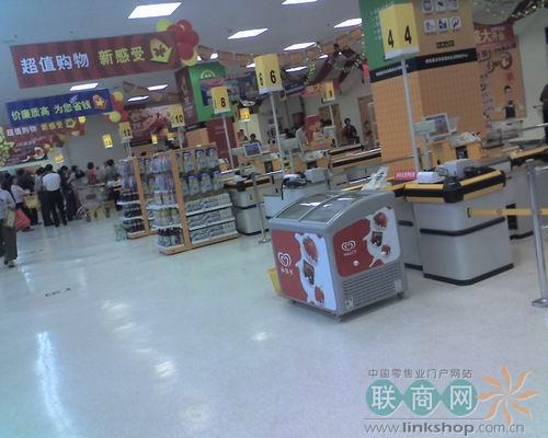 为了节省时间直接由收银口进入超市,感觉超市在人性化设计上还是存在问题,由停车场上到超市的位置没有入口,要穿越整个收银线才是食品区入口,或者上到地面一层百货入口。