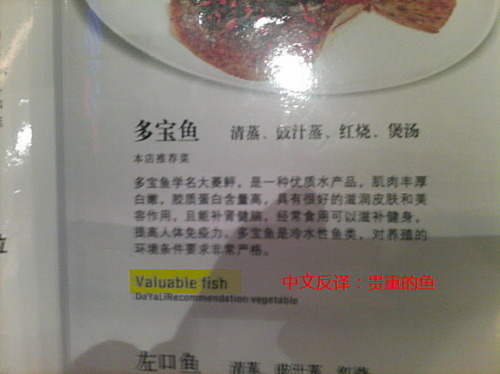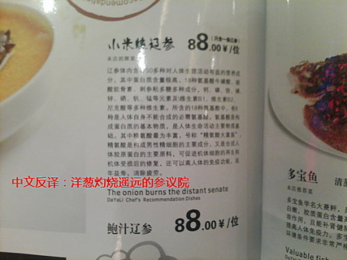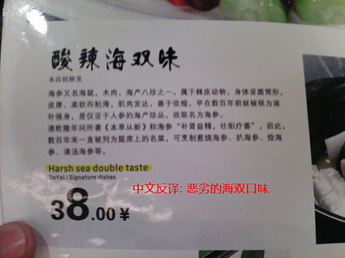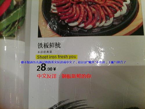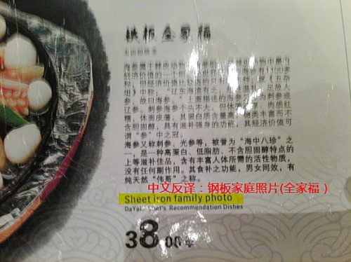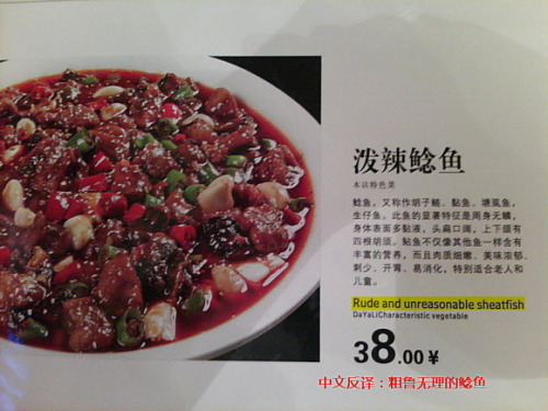 网友去大鸭梨餐厅吃晚餐无意中发现可能是这辈子见到的最强Chin-glish菜单。发一部分分享给大家。