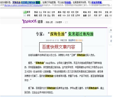 发现这一点,正是我看到QQ星里面有鱼油的这篇文章,赶紧打开想仔细瞧瞧,结果尽到网页里面,这段文字居然没有了!后来慢慢发现,有关伊利QQ星的报道资讯数量骤减,搜索引擎中有,但稿件已被删(有些点开百度快照还能看到),或者是几分钟后文章中有关伊利的字样被删,那都是伊利“公关”的结果。