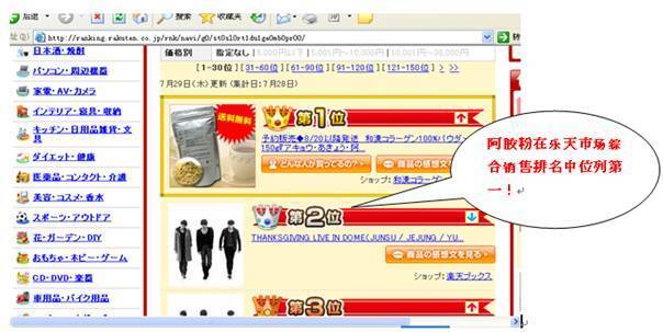 此节目播出后,引起了日本华人的惊叹,事实上,在此致歉,在日本就已经掀起了掀起一股东阿阿胶热,,在日本最大的网上销售网站乐天网上综合销量排名第一,批发网上批发销售量第一。而且其中不含 任何商业炒作,全部都是网友真实的 购买,甚至都没有进行大规模的促销,这种壮观的场景真是难以想象。