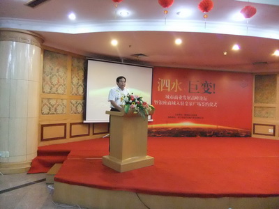 泗水城市商业发展高峰论坛暨银座商城入驻金泉广场签约仪式召开 泗水城市商业发展高峰论坛暨银座商城入驻金泉广场签约仪式召开 [来源:本站 | 作者:原创 | 日期:2010年8月18日 | 浏览241 次] 字体:[大 中 小] 2010年8月18日, 泗水城市商业发展高峰论坛暨银座商城入驻金泉广场签约仪式在圣源酒店三楼大会议室召开。活动邀请了中国建筑文化研究会城市品牌工作委员会主任、浙江大学中国美院教授丁强,银座商城总经理李玉成、副总经理高铸,肯德基开发部经理陈宇豪,山东省浙江商会济宁分会副会长朱成武、秘书长骆大虎,上海亿丰集团济宁投资公司总经理邓宗浩,济宁市城乡规划局副局长贾庆华,济宁市住建局副调研员朱勇,工商银行济宁分行副行长徐在敏,杭州轩亿建筑咨询有限公司总设计师祝云,宏兴房地产开发有限公司董事长章志明、常务副总经理季金力等嘉宾以及齐鲁晚报、济宁日报、济宁电视台、济宁广播电台、济宁广播电视报等新闻媒体记者。泗水县委副书记、县长冯冲,县委副书记、副县长刘宜星,县委常委、纪委书记尹林壮,县人大副主任孔凡华,县政府副县长杨晓东,县政协副主席谢安明,县委党校常务副校长刘玉金,县直有关部门及各乡镇(街道)主要负责人,有关企业负责人以及泗水商界代表参加了签约仪式。仪式由济宁电视台主持人闫红主持。 签约仪式上,县委副书记、副县长刘宜星,济宁市城乡规划局副局长贾庆华,济宁市住建局副调研员朱勇分别致辞;县住建局主要负责人介绍了泗水城市建设及城市商业规划;中国建筑文化研究会城市品牌工作委员会主任、浙江大学中国美院教授丁强作了《城市中心变迁中的商业机遇以及中国县级城市及商业地产发展方向》主题演讲;银座商城总经理、宏兴房地产开发有限公司董事长分别作发言;签约仪式播放了《泗水巨变》、《银座》、《金泉广场》3个宣传片。 县委副书记、县长冯冲在签约仪式上讲话。他指出,本次论坛以“沟通、探讨、发展、合作”为宗旨,以“展望未来,共谋泗水商业发展”为主题,交流、沟通、传播最新的城市商业发展理念,汇聚各方智慧,来帮助指导加快发展泗水城市商业。我们将根据各位专家、嘉宾的意见和建议,牢牢把握城市商业发展的重要机遇期,大力提升市场开放度,优化整合内部资源,全力加快城市商业更快更好地发展。当前,泗水县提出了构建“中国泉乡•滨河园林•生态宜居城市”的战略目标,可以说,泗水正处于城镇大开发、大建设、大发展的关键阶段,城市商业开发建设正站在新的发展起点上,投资合作开发前景美好。 他希望,各家商户在泗水这片沃土上,秉承合法经营、诚心经营之道,以过硬的品牌、适宜的价格、良好的信誉,在城市商业道路上做得更大更强。全县各级各有关部门要本着“亲商、稳商、兴商”的原则,以推进城市商业快速发展为己任,积极主动地协调服务,全力支持广大商户不断发展壮大。 济南银座商城负责人与宏兴房产负责人签约后,和县委副书记、县长冯冲3人共同启动“银座商城入驻金泉广场激光球”。随后新闻媒体记者现场进行了互动专访。