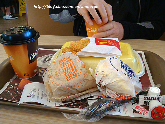 点麦咖啡(McCafe)时,服务生问你们需要几个糖包和奶精(creamer),不再象以前任由食客自由取用而造成浪费。朋友中有人喜欢在早上喝咖啡为的是帮助排便。
