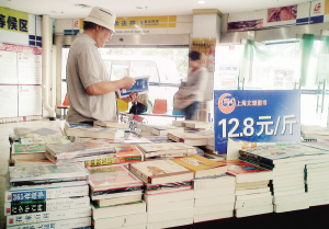近日,读者王先生拨打本报摄影热线反映,河西区广东路世纪联华超市一楼一家书屋搞起“另类促销”,科技类、儿童类、保健类、名著等全部图书一律按斤卖——16.8元、12.8元、9.9元的牌子清晰可见。 (北方网)