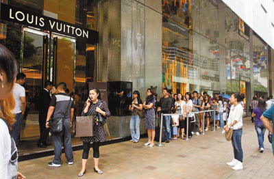 大陆豪客香港狂买奢侈品 LV店外排长队